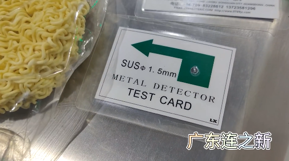 當方便面含有不銹鋼、鐵、銅等金屬時,廣東連之新金檢機發(fā)出鳴叫,紅燈閃爍。