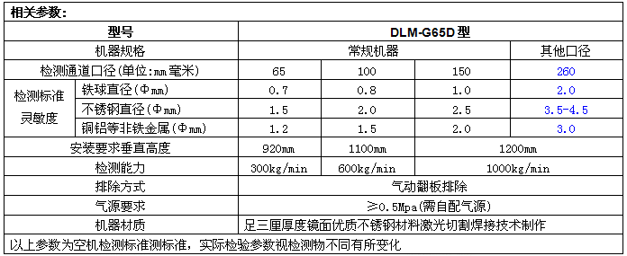 1、專為粉末狀及顆粒狀產品設計的在線檢測裝置,由管道自由下落通道及探測器和排除裝置完美結合組成。具有高靈敏度與高抗干擾能力。