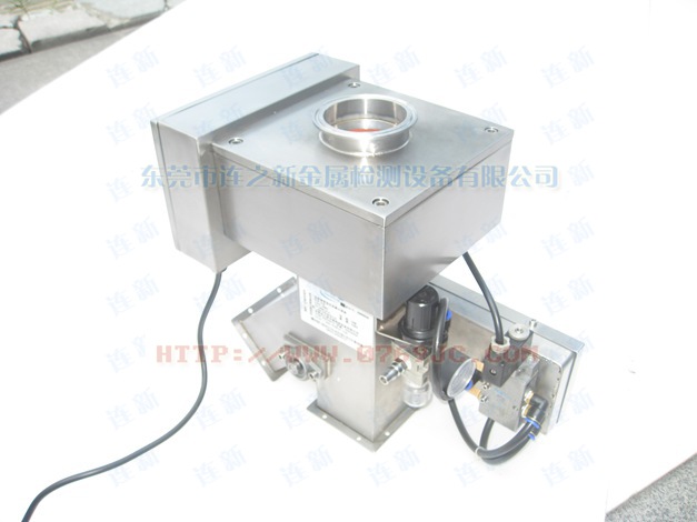 原料從料斗或送料器自由下落進(jìn)入金屬分離器,如果沒有金屬雜質(zhì),原料會(huì)直接通過(guò)金屬分離器流向下端的出料口。如果檢測(cè)器檢測(cè)到原料中含有金屬,那么控制器立刻啟動(dòng)分離板將金屬物和部分原料一起導(dǎo)向側(cè)面的排料口,然后分流板迅速恢復(fù)至正常的位置,分流板速度可調(diào),金屬分離器的檢測(cè)精度也可根據(jù)生產(chǎn)需要調(diào)節(jié),最小可檢測(cè)并分離出Φ 0.2mm的金屬顆粒。